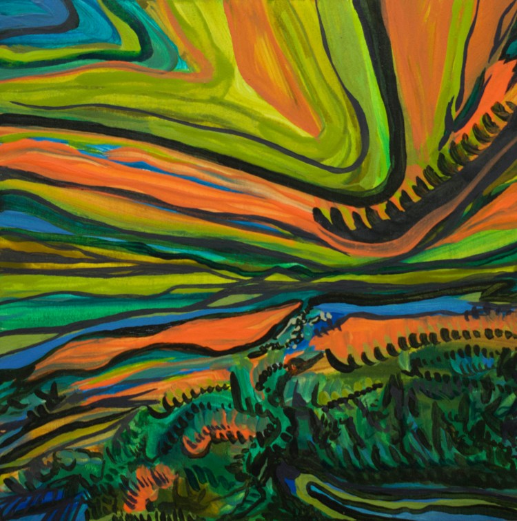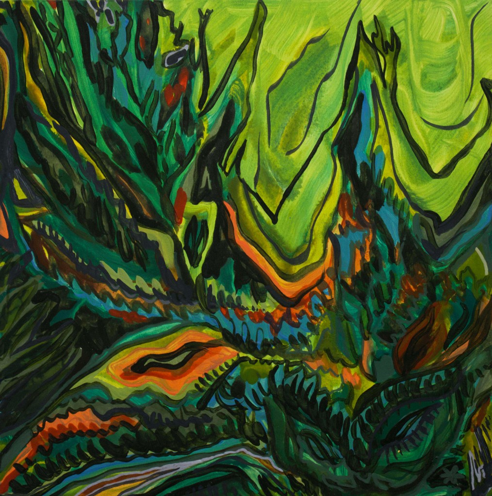 “Forest Shadows” 2020. Acrylic on Panel. 10″x 10″